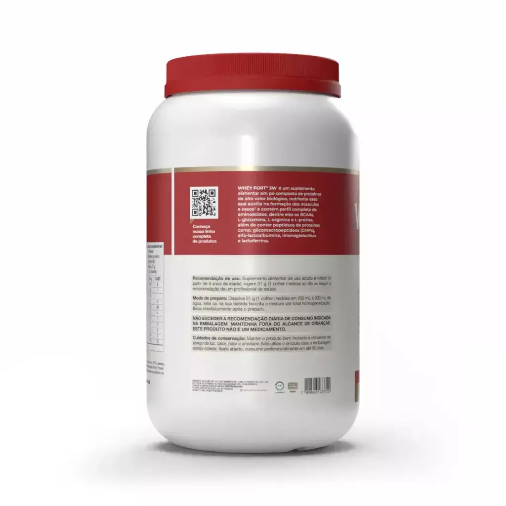 Com perfil completo de aminoácidos, incluindo BCAAs, L-Glutamina, L-Arginina e L-Prolina, o Whey Fort 3W garante suporte máximo para quem busca ganho de massa magra, força e performance superior.